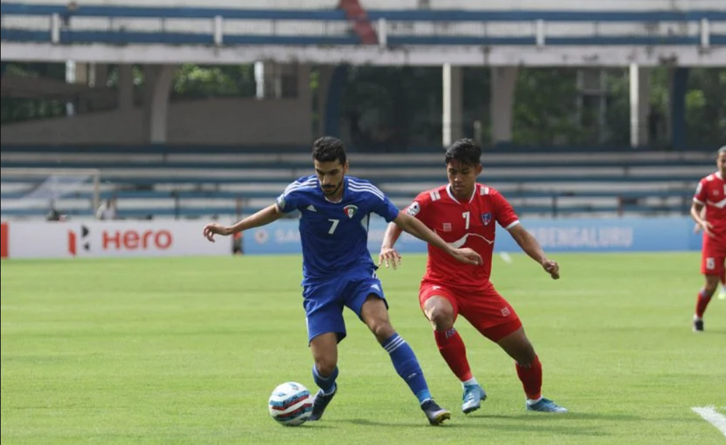 काठमाडौँ । साफ च्याम्पियनसिप फुटबलको बुधवार भएको उद्घाटन खेलमा नेपाली टोली कुवेतसँग ३-१ गोलले पराजित भएको छ । कुवेतले पहिलो हाफमा दुई र दोस्रो हाफमा एक गोल गरेको हो । नेपालले भने एक मात्र गोल दोस्रो हाफमा गरेको थियो । भारतको बैंगलोरस्थित श्री कांतिराव स्टेडियममा भएको खेलमा कुवेतका लागि पहिलो गोल खेल सुरु भएको २३ औँ मिनेटमा कप्तान खालिद हाजिहले गरेका थिए । फवाज वालोताइबीले बायाँतर्फको कर्नरबाट उपलब्ध पासलाई सदुपयोग गर्दै उनले खाली पोस्टमा हेडमार्फत गोल गरेका थिए ।