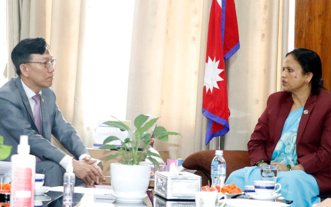 काठमाडौं । सञ्चार तथा सूचना प्रविधिमन्त्री रेखा शर्मासँग नेपालका लागि दक्षिण कोरियाका राजदूत पार्क तइयोङले शिष्टाचार गरेका छन् ।