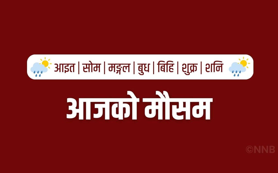 आज दिउँसो देशभर सामान्य बदली रहनेछ । सुदूरपश्चिम प्रदेश लगायत देशका पहाडी भू–भागका केही र बाँकी प्रदेशका थोरै स्थानहरूमा हल्का देखि मध्यम वर्षाको सम्भावना रहेको छ। सुदूरपश्चिम प्रदेशको एक–दुई स्थानमा चट्याङ्गसहित भारी वर्षाको समेत सम्भावना रहेको छ ।