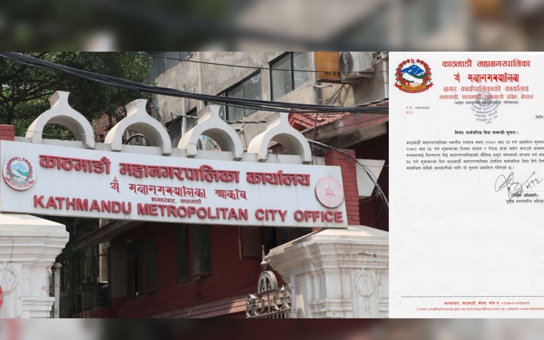 काठमाडौं । काठमाडौं महानगरपालिकाले शुक्रबार सार्वजनिक बिदा दिने निर्णय गरेको छ ।