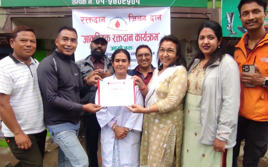 “रगतकाे बिकल्प रगत”मूल मर्मलाई आत्मसात् गर्दै हाल भईरहेकाे रगतकाे माग र आपूर्तिमा मेल हुन नसकि उपचारार्थ विभिन्न अस्पतालमा भर्ना भएका बिरामीहरूकाे जीवन रक्षार्थ रगत र रगतबाट तयार पारिएका रक्त-तत्वहरूकाे उपलब्धतामा सहजता होस् भनेर नेपाल स्वयंसेवी रक्तदाता समाज ललितपुर जिल्ला शाखाले आज एक आकस्मिक रक्तदान कार्यक्रम आयाेजना गरेको छ ।