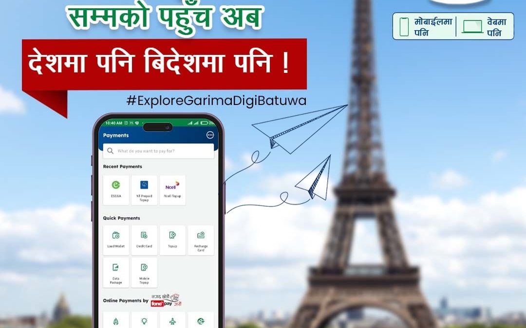अब विदेशमा बसि बैंक मार्फत मोबाईल बैकिङ सेवा लिन चाहनुहुने ग्राहकमहानुभावहरुले बैंकले तोके बमोजिमका कागजातहरु पुरा गरि यो सेवा लिन सक्नेछन । साथै, यो सुविधा लिने ग्राहकले गरिमा डिजि बटुवाकै युजरनेम र पासवर्ड प्रयोग गरी बैंकको वेब बैकिङ पनि सजिलै चलाउन सक्नुहुनेछ ।