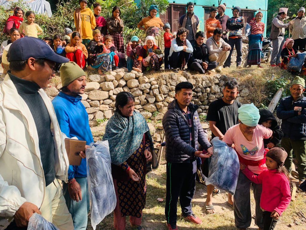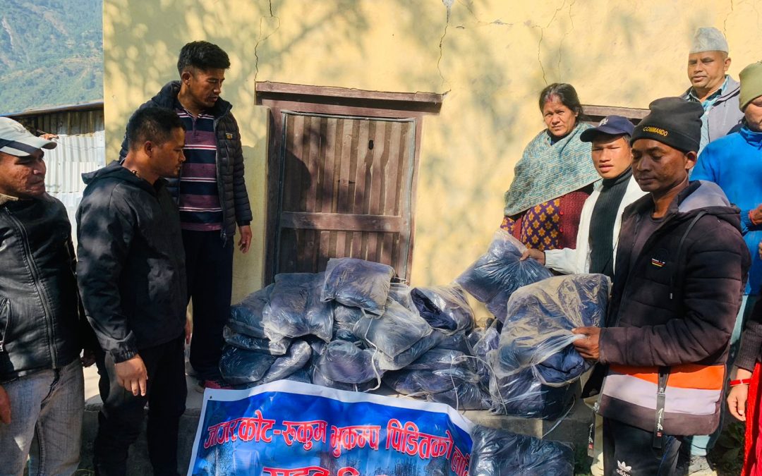 काठमाडौं । जाजरकोटको रामी डाँडालाई केन्द्रबिन्दु बनाएर गएको  विनाशकारी भूकम्पका कारण मानवीय र भौतिक क्षतिको शिकार बनेको जाजरकोट र रुकुम पश्चिमका भूकम्प प्रभावितका लागि ललितपुर स्थित ईमाडोलमा रहेको थ्रेड गार्मेण्टले गत आईतवार ५ लाख बराबरको ३ सय पिस ज्याकेट गार्मेण्डका बजार ब्यबस्थापक बिकास तिमल्सिनाले हेमराज गिरि लगायतका समुहका मार्फत  जिल्ला विपद व्यवस्थापन समितीका संयोजक रबिन धितालको हातमा पुग्नेगरी गार्मेण्टबाट पठाएको सामान जाजरकोटका भुकम्प प्रभावितलाई वितरण गरिएको छ ।